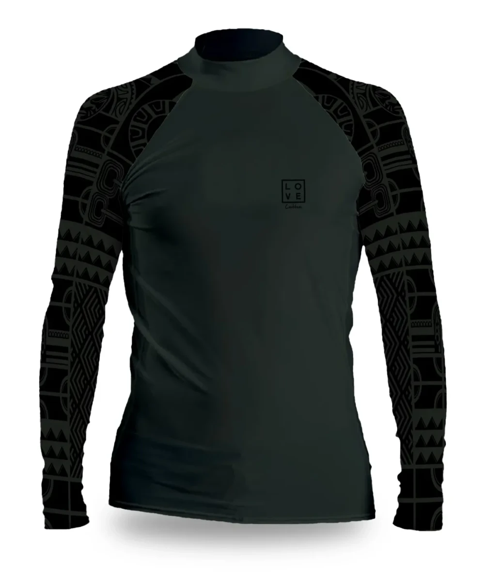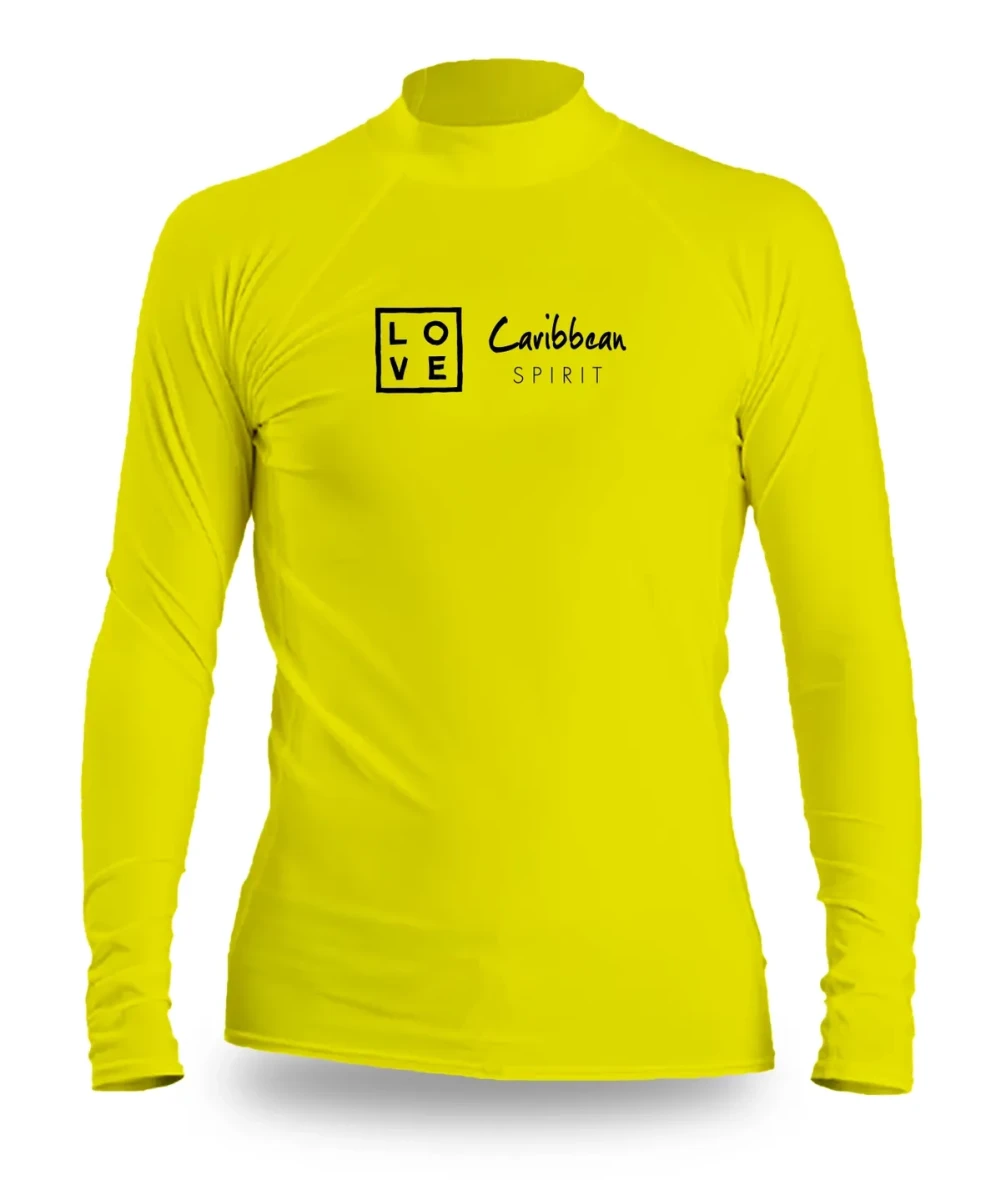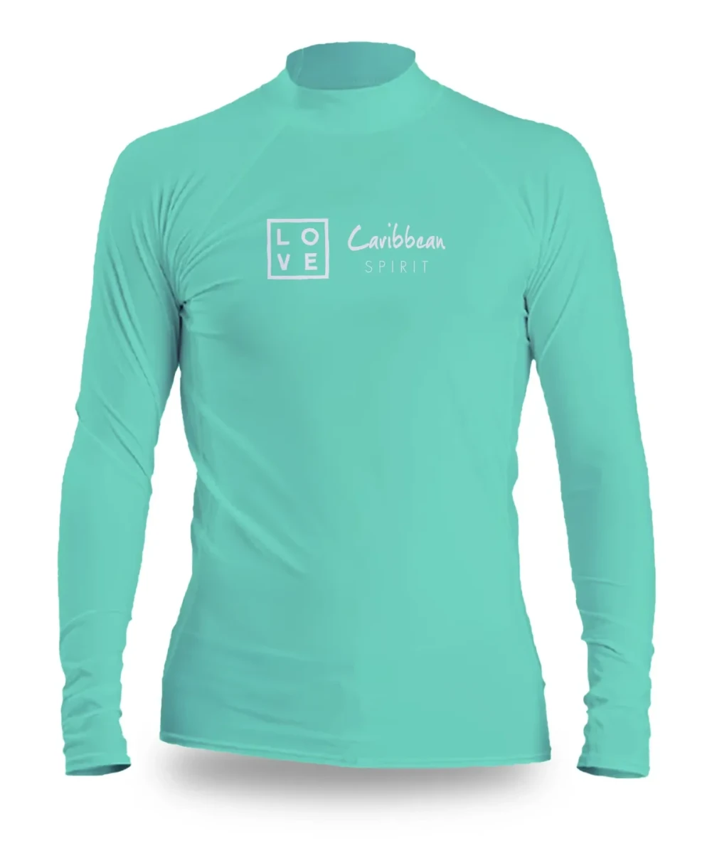 Discover the LOVE Caribbean unisex long-sleeve lycra, designed to support your active lifestyle and moments of relaxation by the sea.